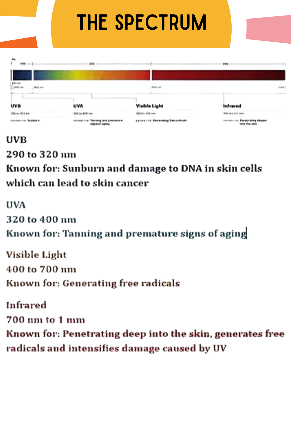 Look for broad spectrum otherwise known as UVA, UVB and visible light protection.